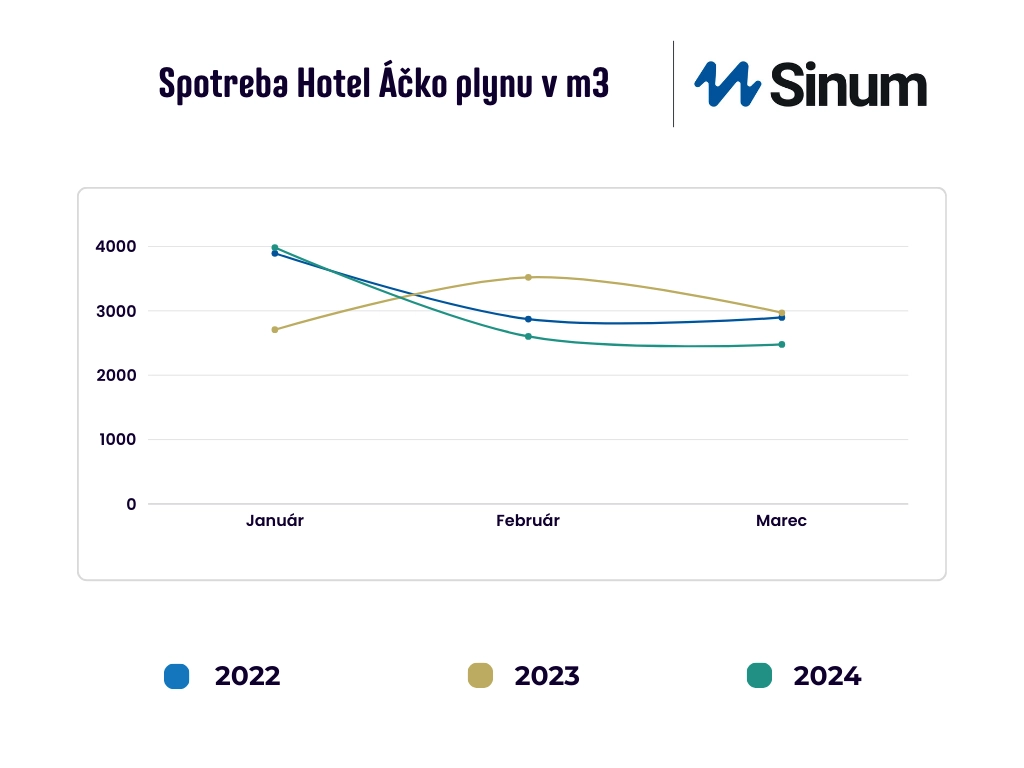 Celková úspora 6% sa zdá byť na prvý pohľad nízka, ale treba pamätať na to, že do celkovej spotreby vstupujú rozličné faktory – vonkajšia teplota, preferencie majiteľa a v prípade hotela obsadenosť. Aj keď bol prvý kvartál 2024 teplejší ako predchádzajúce roky, priemer teplôt nie je radikálne odlišný. V tomto prípade zásadnejšie vplýva na spotrebu obsadenosť hotela.