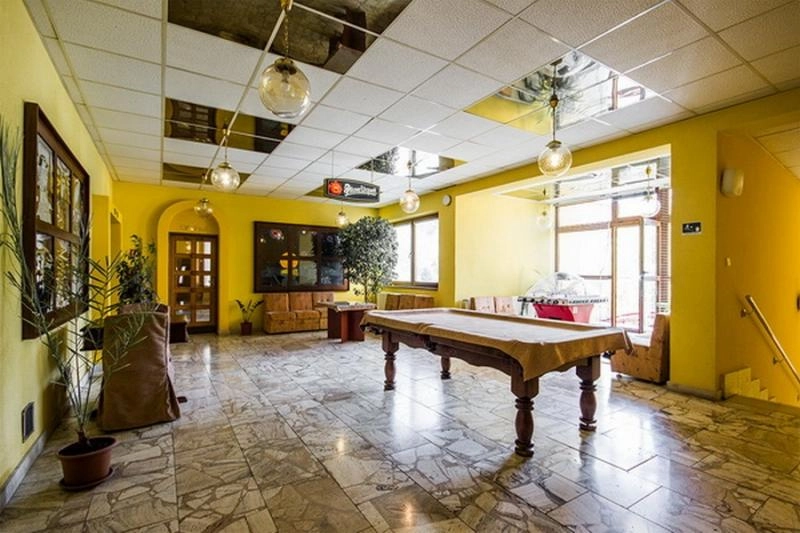 13 apartmánov zložených zo spálne a obývačky, kúpeľne so sprchou a WC a 5 jednolôžkových izieb s prístelkou takisto vybavených samostatnou kúpeľňou a WC a spoločné priestory bolo vybavených: