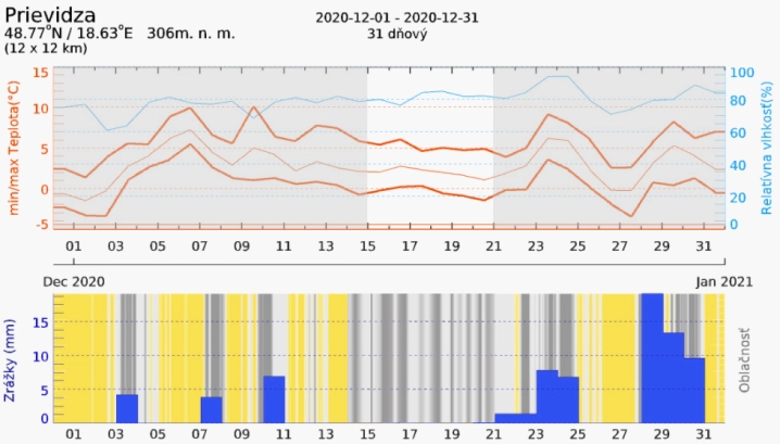 Vývoj počasia a teplôt mesiac december.