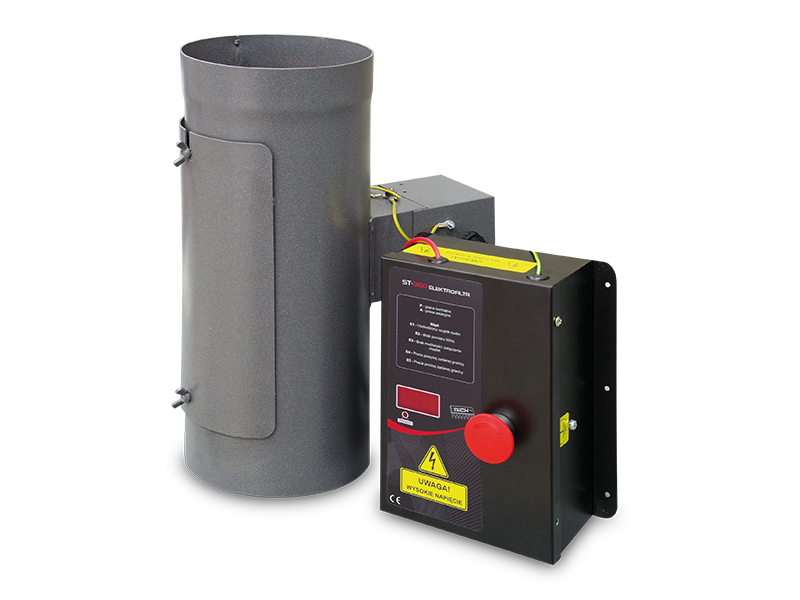 Základnou časťou elektrofiltru (obr. 1 a 2) je generátor vysokého napätia (1), ktorý vytvára jednosmerné napätie. Telo elektrofiltru (2) je vyrobené z uhlíkovej ocele. V strede spalinového kanálu je umiestnená výbojová elektróda vyrobená z oceľového drôtu (3), ktorý generuje korónový výboj. Je uchytená pomocou špeciálneho držiaku s eramickým izolátorom (4). Výbojová elektróda je napájaná vysokým napätím z generátoru WN (1), prívodného vodiča, má špeciálnu izoláciu (5). Usadzovaciu elektródu tvoria uzemnené steny tela elektrofiltru a komínového kanálu, v ktorom je filter umiestnený. Priestor filtru, kde je umiestnená elektróda, je prevzdušňovaný ventilátorom (6). Ručné čistenie a údržba sa prevádza cez revizné dvierka (7). Na prianie klienta môže byť elektrofilter doplnený automatickým čistiacim systémom (nie je zobrazené).