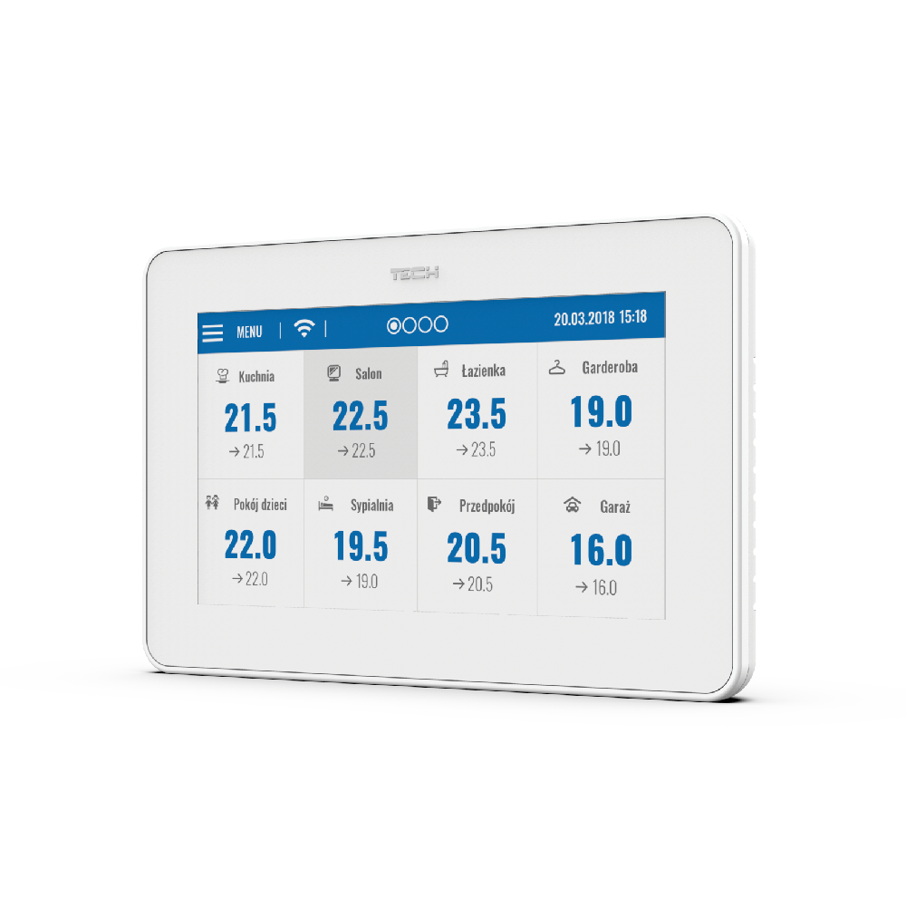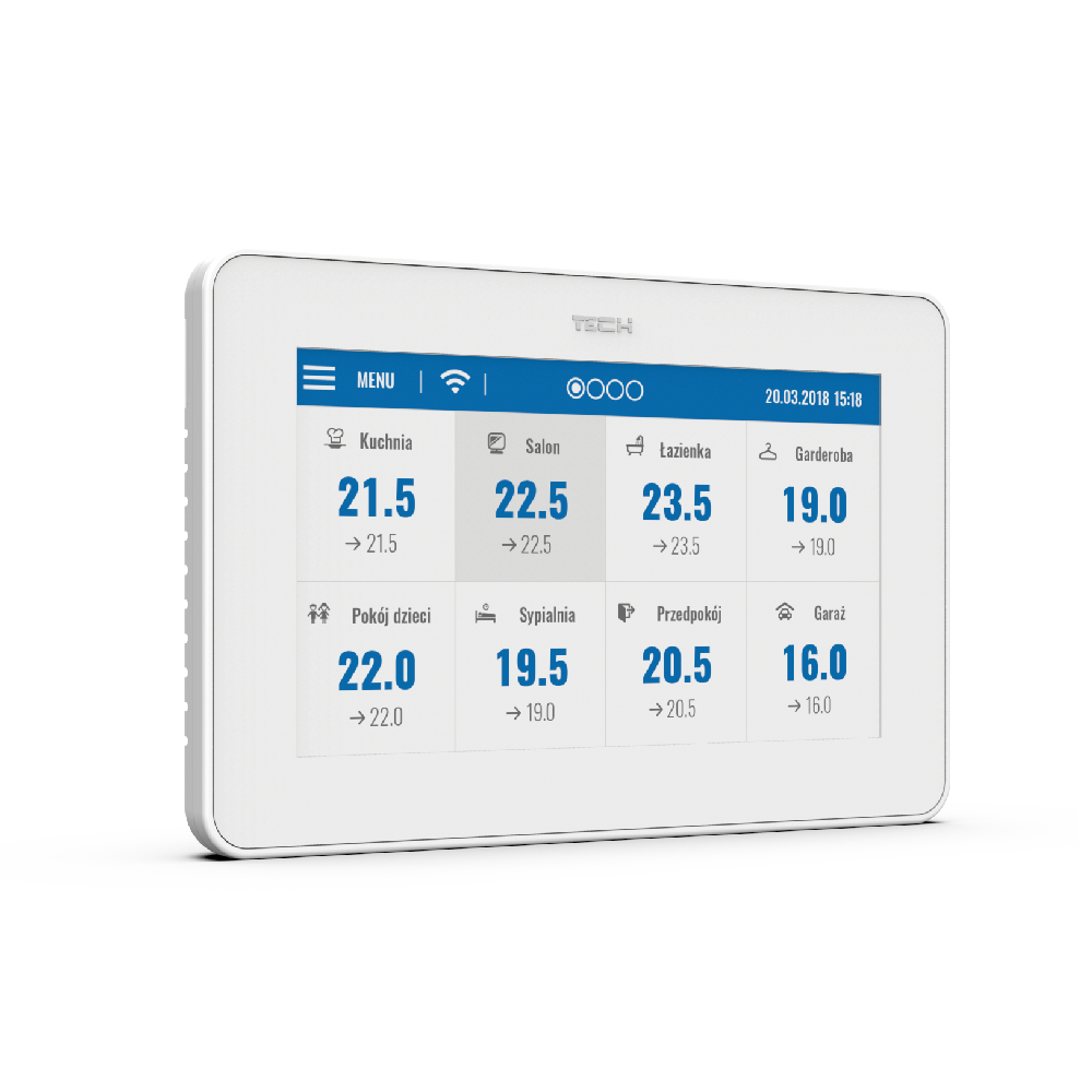 Čitateľný, dotykový panel umožňuje jednoduché ovládanie podradených zariadení. Pre upravenie parametrov danej zóny je potrebné kliknúť na časť displeja s informáciami o jej stave. Vzhľad displeja kontrolného panelu regulácie vykurovania je možné prispôsobiť svojim potrebám vo funkcii nastavenie displeja. Užívateľ má možnosť nastaviť šetrič displeja vo forme dátumu alebo času. Ďalej má možnosť výberu farebnej témy displeja a zapnúť alebo vypnúť zvuk tlačidiel.