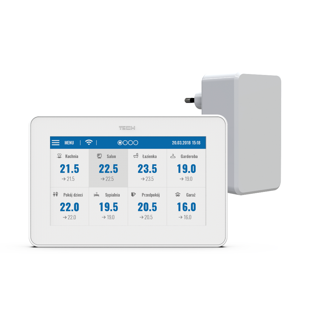 Internetový WiFi modul umožňuje vzdialenú kontrolu systému vykurovania. Užívateľ má možnosť kontrolovať stav všetkých zariadení z prostredia svojho počítača, tabletu alebo smartfónu. Po pripojení kontrolného panela k lokálnej WiFi sieti a označení možnosti DHCP bude regulátor automaticky získavať informácie z lokálnej siete, ako je IP adresa, maska IP, adresa brány a adresu DNS.